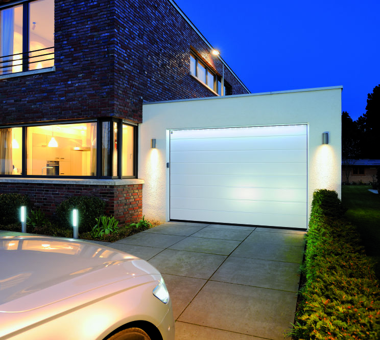 Avec les portes sectionnelles motorisées, les individus indésirables n'ont pas la moindre chance. Lorsque la porte de garage est fermée, la sécuriré anti-relevage s'encliquette automatiquement dans la butée de rail de guidage. La porte se verrouille immédiatement et est ainsi protégéé contre tout relevage