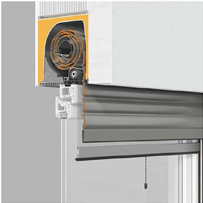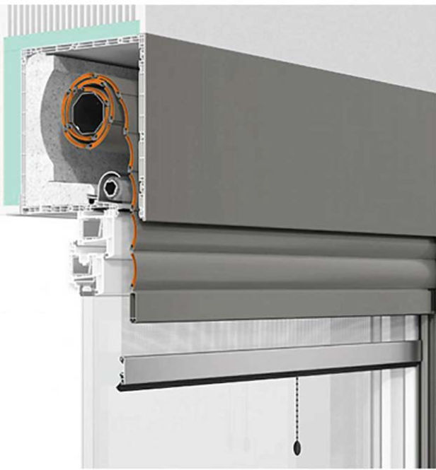 Système de volet roulant bloc-baie en PVC. Disponible en option avec supports de crépi extérieurs ou caisson extérieur en aluminium.